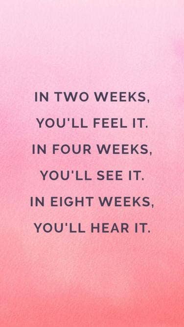 ”In two weeks, you’ll feel it. In four weeks, you’ll see it. In eight weeks, you’ll hear it.” —Unknown