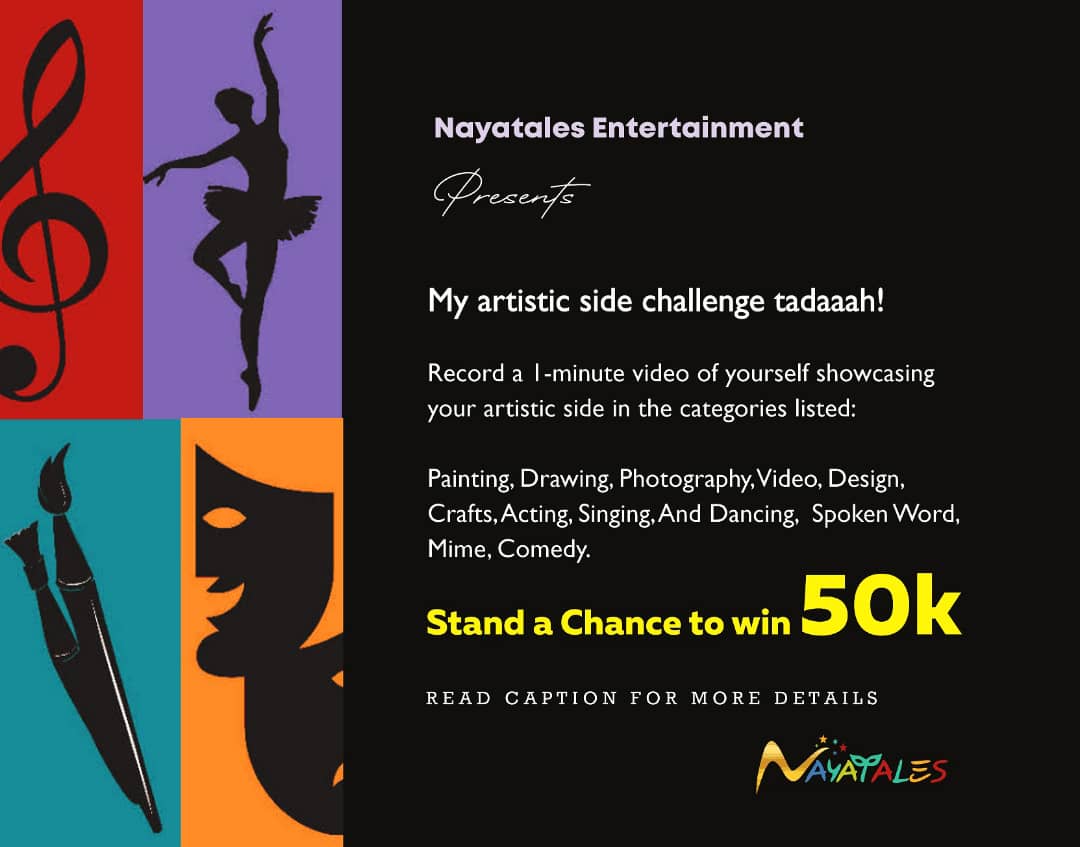– Record a 1-minute video of yourself or your group showcasing any form of art. Use the hashtag #myartisticsidechallenge and also tag @nayatales on instagram for your entry to be valid