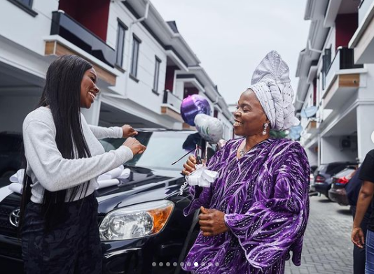 Media personality, Tomike Adeoye has gifted her mother a car.