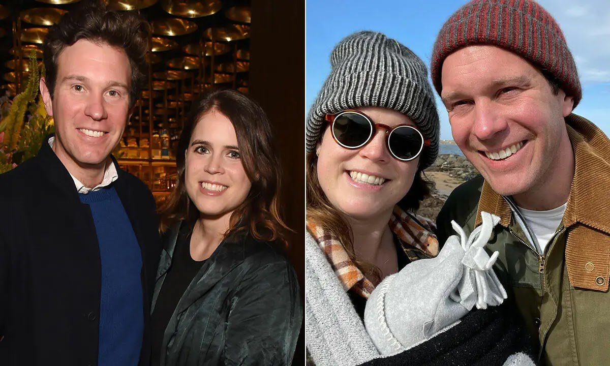 The first saw Jack pushing their son in a pram, while a second was of the couple smiling as Eugenie carried little August in a sling. A third picture featured Jack with a big smile on his face as August cuddled in close to his neck and the fourth shows Jack enjoying a quick nap with his newborn son on his chest.
