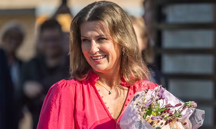 beaming from ear to ear as she sat regally on a stylish grey sofa.