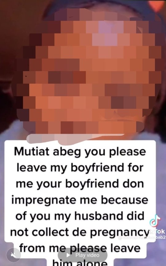In the video making rounds, the pregnant woman was seen crying while she begs Mutiat to leave her husband alone.