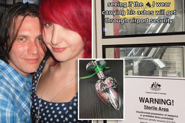 A woman was stopped by airport security when she arrived with a butt plug containing her late boyfriend’s ashes up her bum.