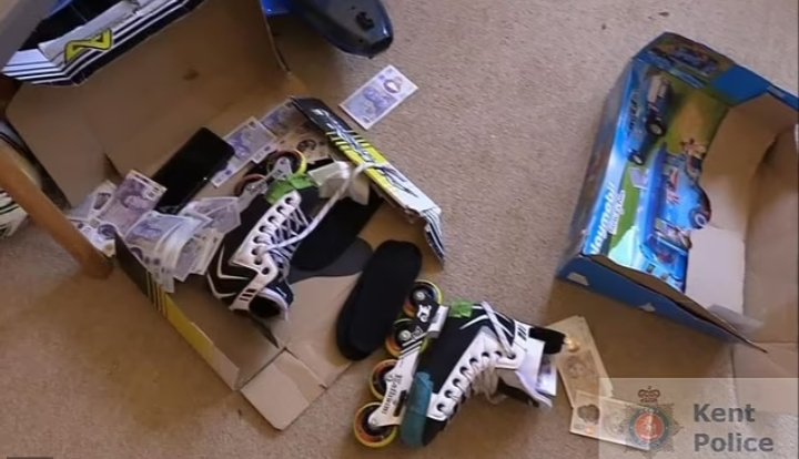 Undated handout photo issued by Kent Police of an image of a rollerblades box. The rollerblade box relates to clues Alexandra Morgan left before visiting Brown for sex for the final time. She left a note for her son saying “let’s go rollerblading” and inside his box of rollerblades they found cash, the pin number to her secret phone used for escorting work, and a note giving Brown’s name and address