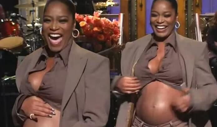 On Saturday Night Live, Keke Palmer confirmed she was expecting baby number one by flashing her baby bump during her opening monologue