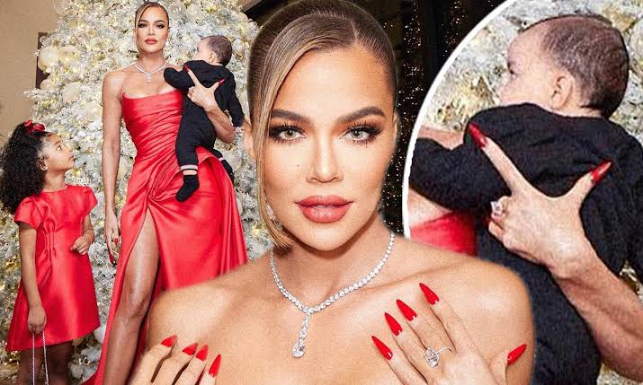 In an event that leaves fans of Khloe Kardashian received an extra treat over the Christmas weekend, the reality star posed for festive snaps in front of a giant Christmas tree with her five-month-old son held in her arms while daughter True posed beside them.