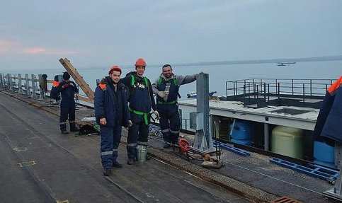 Reconstruction work is going on there heavily as Putinists are busy paving the spans of the bridge across the Kerch Strait.