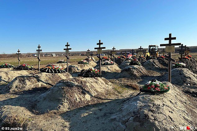 Grave after the grave has been filled at the Krasnodar cemetery, where criminals, released from prison to join the invading Moscow forces, are being buried.