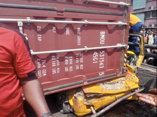 In the Lagos accident, nine persons were confirmed dead and one person was rescued alive after a truck conveying a 20-foot container fell on a commercial minibus at Ojuelegba in the Surulere area of the state, according to LIB.