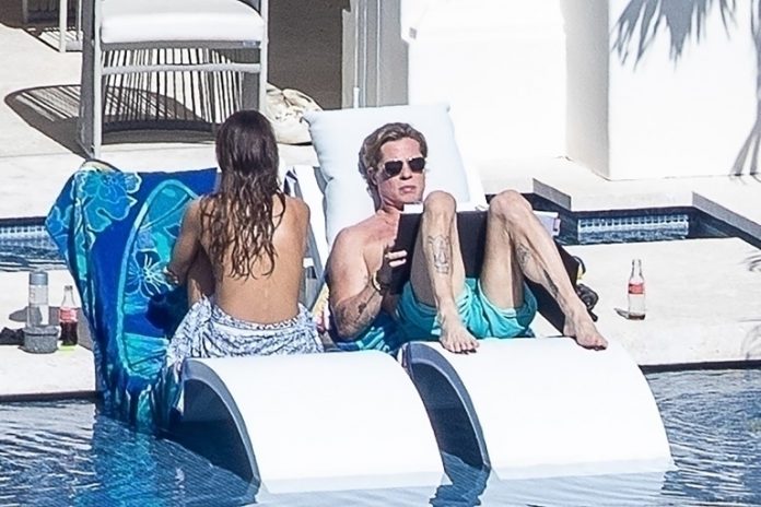 Hollywood actor and producer, Brad Pitt has been pictured topless alongside his scantily clad girfriend, Ines de RamonNew during a romantic Cabo getaway.
