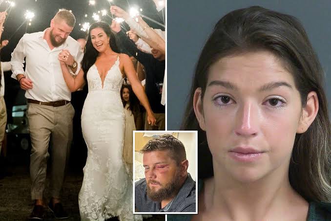 The new groom, Aric Hutchinson, who was seriously injured in the crash, has filed a civil lawsuit against her and the bars that allegedly over-served her.