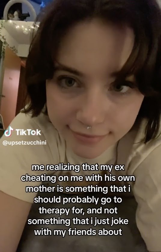 It reads: ‘Me realizing that my ex cheating on me with his own mother is probably something that I should go to therapy for and not something that I just joke with my friends about.’