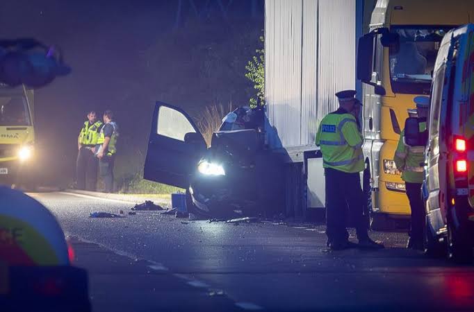 The black BMW had veered off the carriageway and hit the rear of a lorry which was parked in a lay-by.