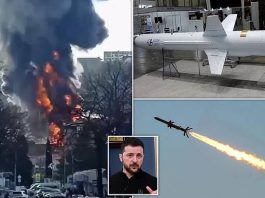 ‘Another nine Ukrainian drones were suppressed by electronic warfare and crashed in the waters of the Black Sea and Cape Tarkhankut without reaching their target. There were no casualties or damage as a result of the foiled terrorist attack.’