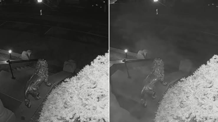 ‘Last night, for the very first time our motion detector alarms INSIDE the building were set off by this camera motion caught on video in the dead of night outside the window.