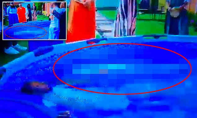 Before the recording finished, onlookers were seen crowded around the pool, just feet away from Mr Smith, but none of them seemed to see the tragedy unfolding.