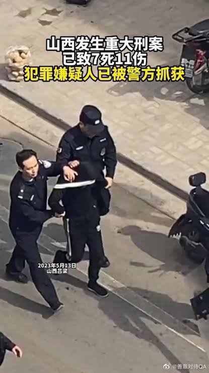 Police in the central Chinese province of Shanxi have detained a 27-year-old man accused of killing at least seven people, four of them by driving into a group of pedestrians and cars.
