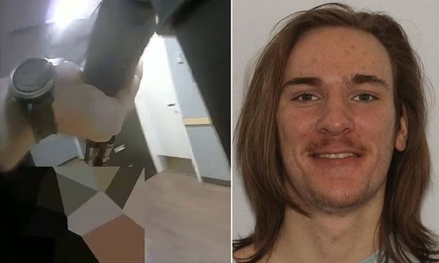 Now police have released heart-stopping bodycam footage of the moment they found the shooter dead at the back of the store’s vision center.