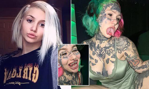 As well as her tattoos, she has split her tongue, had veneers fitted to form fangs, and had a heart-shaped implant put in her hand.