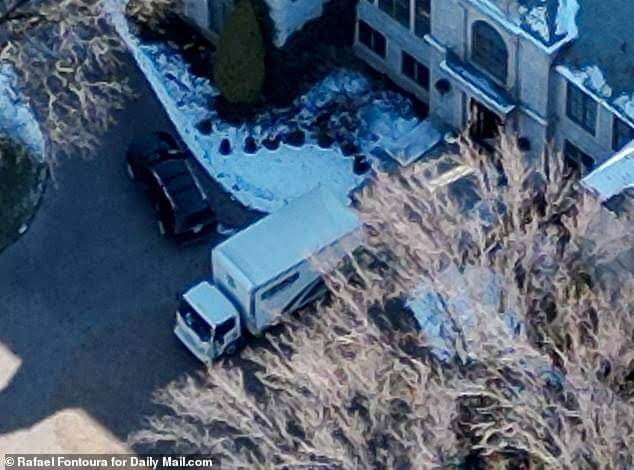Furniture and other items were seen being carried into the main entrance of the snow-covered $6million mansion by staff as another vehicle pulled into the six-car garage.