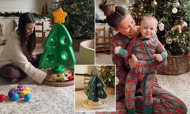 A mom has sparked furious backlash after revealing she spray painted her child’s toys to match the ‘neutral’ color scheme of her Christmas decorations.