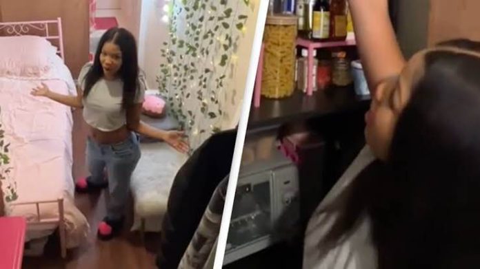 A young woman has shown off her tiny apartment in New York City — revealing how she washed her dishes in a bucket because she didn’t have a kitchen sink.