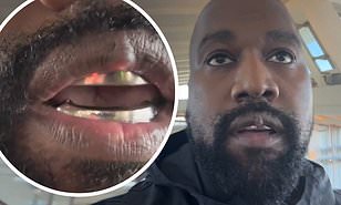 Kanye West displays WORRYING growth on lip after experimental dental surgery