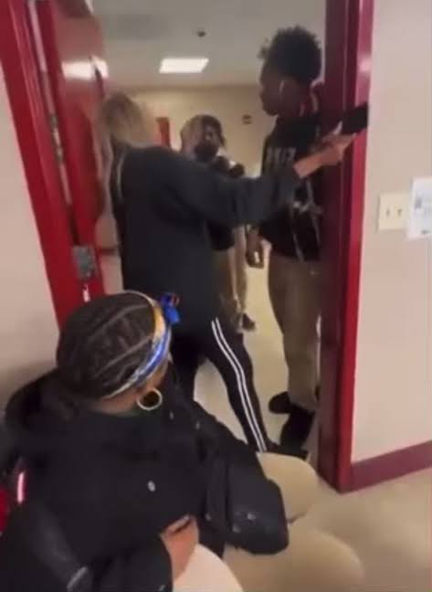 From the video, it seemed some students were late for class and the teacher was trying to lock the door against them but the boy seems not to be having it. Hence, he challenged her.