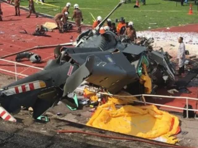 Two Malaysian navy helicopters collided in mid-air as they flew in formation during a rehearsal for a military parade.