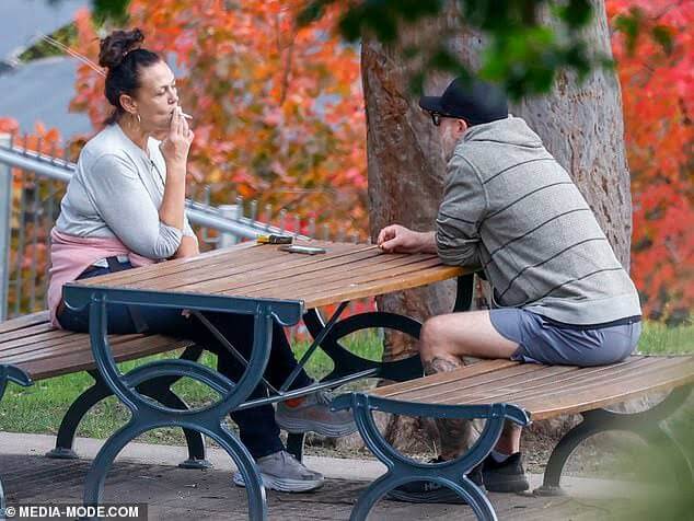 The radio personality was sharing a cigarette with the unidentified man as they had a chat in the park together.