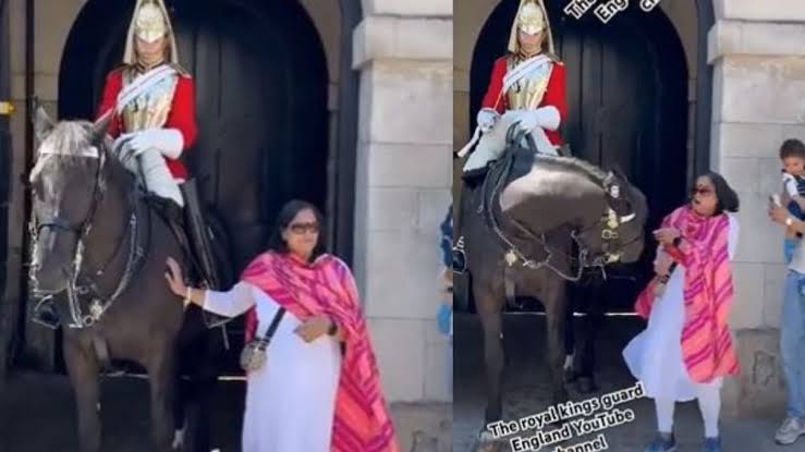 A King’s Guard horse bites a tourist after she touches the animal while posing for a photo.