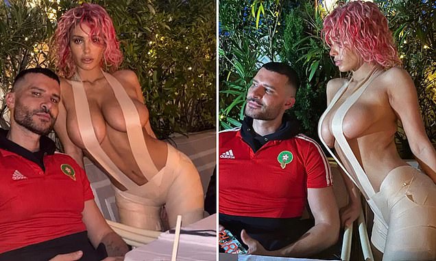Once inside the eatery, Bianca posed up a storm in a slew of snaps as she cuddled up to Gadir, who was casually clad in a Moroccan football top.