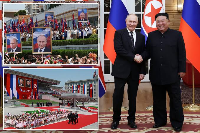 On a rare visit by Putin to North Korea, his first time in 24 years to the hermit nation, thousands trooped to welcome Putin in a lavish ceremony when he arrived in the North Korean capital on Wednesday, June 19.