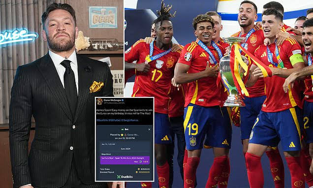 When he initially placed the bet, McGregor wrote: ‘Vamos Spain! Easy money on the Spaniards to win the Euros on my birthday! A nice meal for the Mac!’.