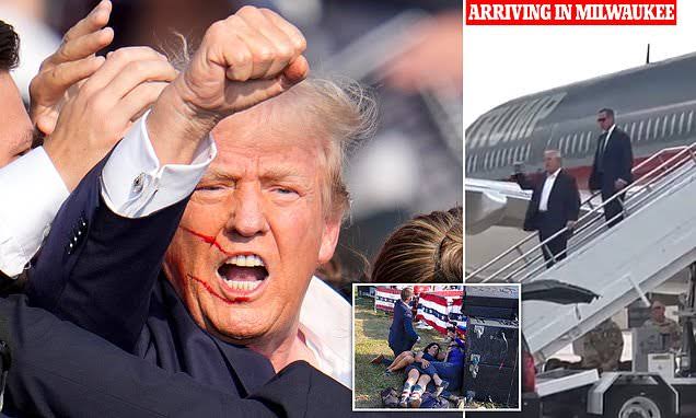 Trump turned his head at the vital moment and ended up with a bloody ear. He was hustled off stage by his Secret Service detail, but not before giving his supporters a clenched fist salute.