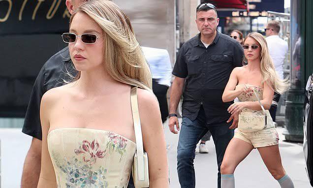 The 26-year-old Euphoria star turned up the heat in the French capital as she donned a £1,600 bandeau corset top from Ralph Lauren with matching shorts, which showcased her amazing figure.