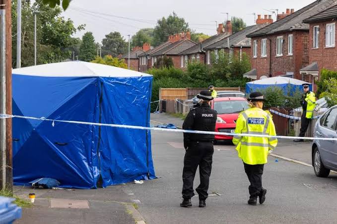 A triple stabbing on a quiet street in Manchester has left one person dead and two others including a teenage girl fighting for their lives.
