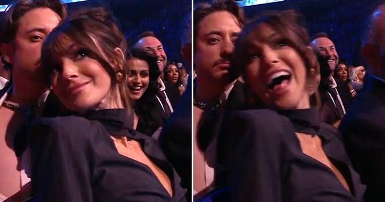 Michelle was seen beaming for the camera as her name was called out at The O2 arena when Ryan, who plays Tommo in Brassic, flashed prompting the actress to turn around laughing at his cheeky antics.