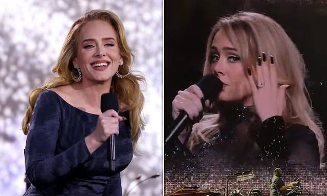 The Rolling In the Deep singer, 36, held up her hand during her performance of I Drink Wine and the ring was nearly visible from space.