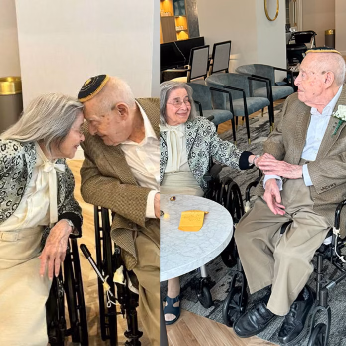 The wedding took place at the same senior living facility where they first met. Four generations of Bernie’s family attended, holding up a chuppah, a traditional Jewish wedding canopy, while Bernie and Marjorie were escorted to the altar in wheelchairs.