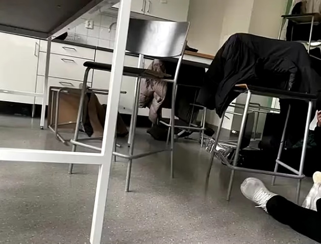 Inside the school, a photo published by Swedish media showed a person lying on the classroom floor beside overturned chairs that had been used to barricade the door.