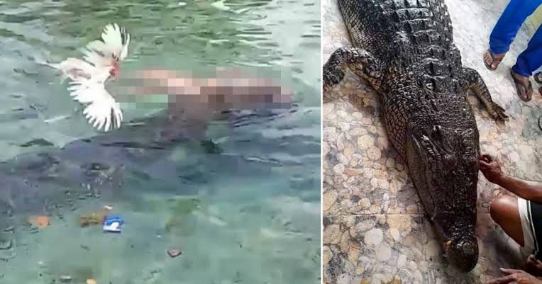 Locals were only able to collect her body around two hours later after the crocodile released her.