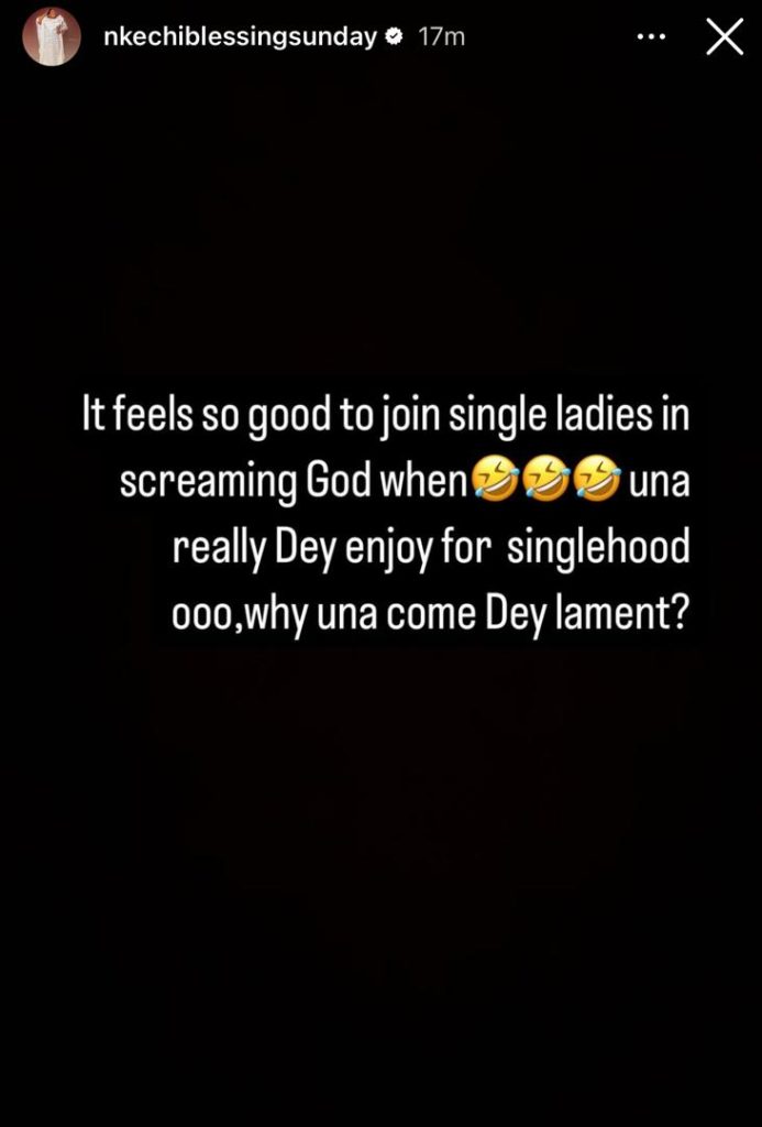 Nkechi was previously in a relationship with an aide to the Delta State governor. Now, however, she’s choosing to focus on herself — no romance, no drama.