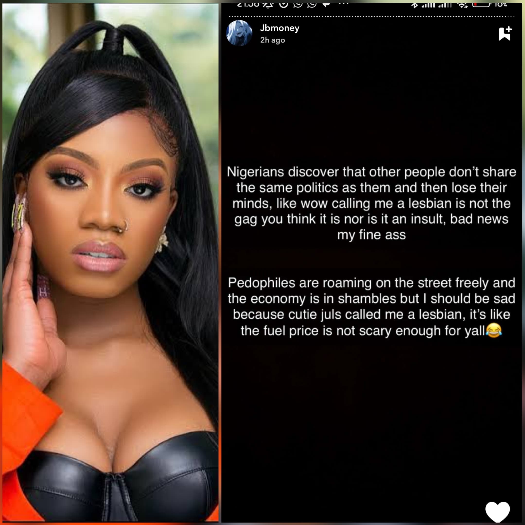 Challenging critics who she says are quick to moralize while ignoring their own flaws, Angel continued: “You really think if you were to die today and a g@y person also died, God will exempt you from hell because your own sin is small? I’m sure you just lied yesterday, or even this last minute.”