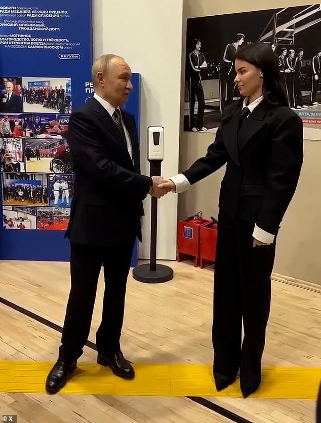 Putin, 73, met with Yekaterina Leshchinskaya, 22, the chair of the Russian Healthy Fatherland movement, to discuss the possibility of banning the sale of e-cigarettes in the country when the marks on his hands were noticed.