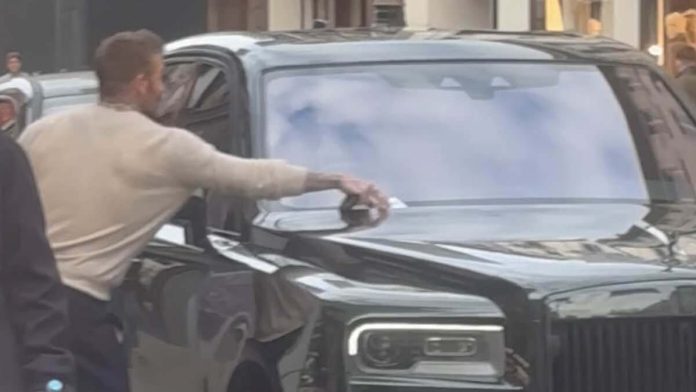 However a new clip shows David leaving the store and his wife Victoria walking around the car to get into the passenger seat.