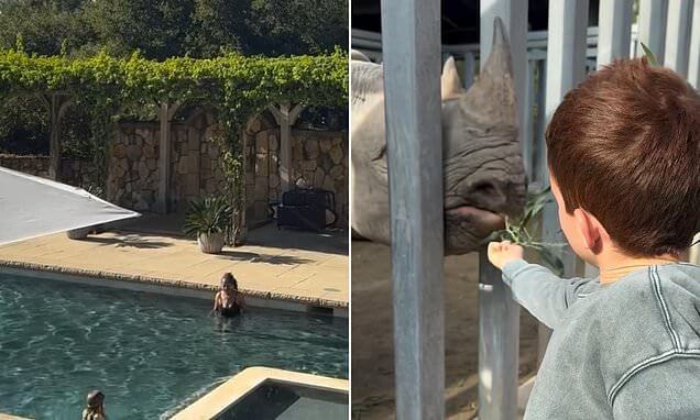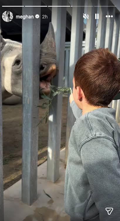 Meghan Markle shared ‘Carefree Days’ in beautiful footage of her children soaking up the sunshine in a swimming pool and feeding rhinos at the zoo.