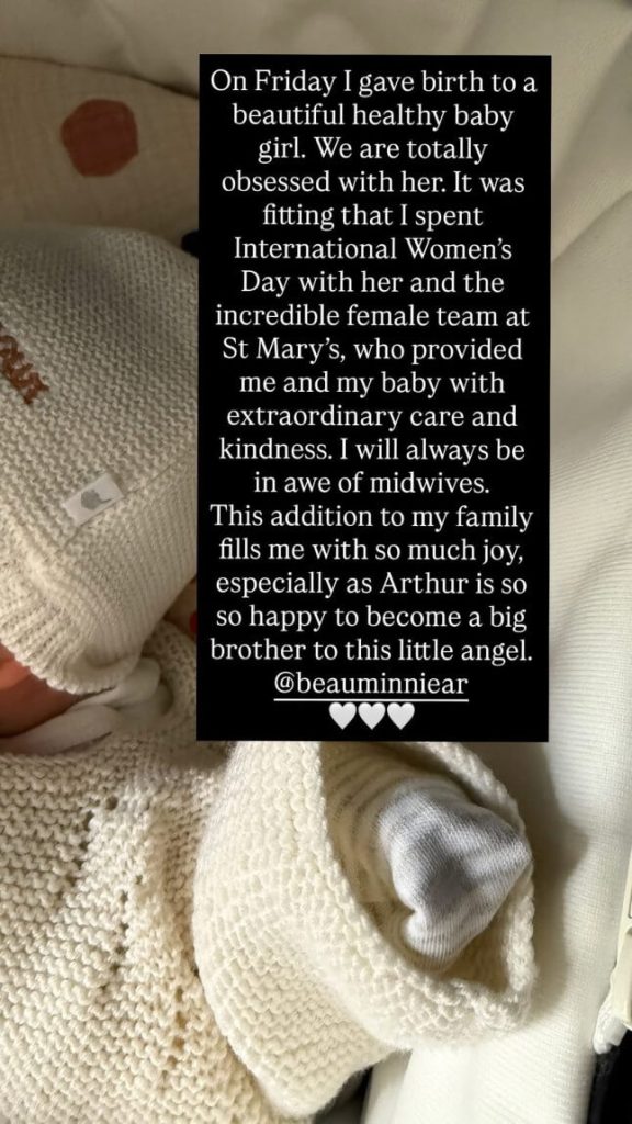 ‘I will always be in awe of midwives. This addition to my family fills me with so much joy, especially as Arthur is so happy to become a big brother to this little angel.’