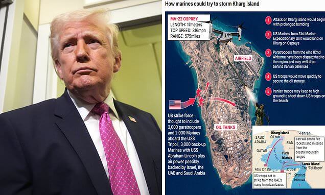 US President Donald Trump has warned that he could ‘take the oil in Iran’ and boasted that he can invade Kharg Island ‘easily’.